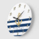 Nautical,Gold Anchor Navy Blue Stripes Large Clock