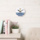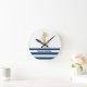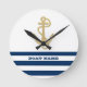 Nautical,Gold Anchor Navy Blue White Stripes Round Clock
