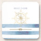 Nautical Gold Boat Wheel,Blue Watercolor Stripes Coaster