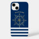 Nautical,Gold Boat Wheel, Navy Blue Stripes Case-Mate iPhone Case