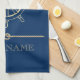 Nautical Gold Boat Wheel,Navy Blue Tea Towel