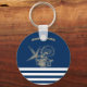 Nautical,Gold Seashells Navy Blue Stripes Key Ring
