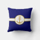 Nautical Golden Anchor on Navy Blue & White Cushion