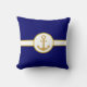 Elegant nautical golden anchor on navy blue and white Throw Pillow.