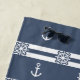 Nautical Grey & White Stripes, Anchor & Ship Wheel Beach Towel