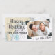 This cute photo card shows off your favourite picture like it were scrapbooked right onto the card. The background is the authentic NOAA nautical navigation chart for the Cape Sable to Cape Hatteras region, and it's overlaid with a festive watercolor anchor, all dressed up in its finest holiday greenery, and the Happy Holidays from NEW HAMPSHIRE greeting may be customised to your liking.