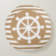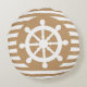 Nautical Helm on Burlap White and Tan Stripes Round Cushion