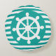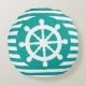 Nautical Helm on Burlap White and Teal Stripes Round Cushion