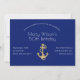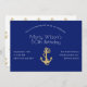 Navy blue birthday party invitations with anchor design. Nautical themed, with text templates, the invitation is perfect for celebrating any seafaring man's special day. Reverse contains a gold anchor pattern.