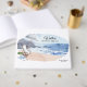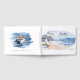 Watercolor guestbook features beach scene on front and floating boat on back with longitude and latitude. Personalise with your family or property name and established date.
