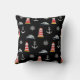 Nautical icons, lighthouse, silver grey anchor and ship wheel on black Throw Pillow.