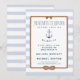 Nautical Boutique Co.'s nautical engagement party invitation features classic traditional styling combined with modern design elements. The typography includes a a classic block lettering reminiscent of nautical styles paired with modern handwriting font. The border is a realistic-looking rope with an "infinity knot," and the background is a modern watercolor finish of traditional nautical blue and white stripes. A matching watercolor anchor completes this nautical design. #Nautical #BeachWedding #DIYWedding