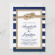 Nautical Knot Burlap & Watercolor Navy Stripes Invitation