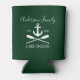 Stylish Script Nautical Lake House Anchor Oars Family Name Forest Green Can Cooler