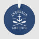 Nautical Lake House Anchor Oars Family Name Navy Blue Ornament