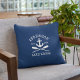 Nautical Lake House Family Name Anchor Oars Navy Blue Outdoor Throw Pillow