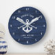 Add a personalised touch to your family lake house or mountain lakeside cottage with this rustic clock, featuring an anchor and crossed oars on a rustic navy blue wood background, with family name, lake house location and established date in easy to use text templates.