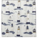 A classic nautical lighthouse pattern shower curtain in navy and soft gold tones, featuring coastal waves and soaring seabirds. A great choice for ocean lovers, beach enthusiasts, and anyone who enjoys timeless maritime style.