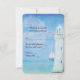 White lighthouse and sailboat with seagull for nautical wedding RSVP.