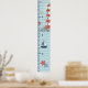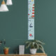 Dive into a delightful underwater adventure with this charming nautical children's growth chart. Against a soft blue, wavy stripe background, adorable hand-drawn illustrations of a classic red and white lighthouse and starfish create a fun design and add the perfect touch of coastal whimsy to a baby nursery, toddler bedroom, playroom, or beach house. Personalize it with your child’s name to create a meaningful keepsake that grows right along with them. Part of our coordinated 'Nautical Kids’ Room' collection. Note: design adapted from generative content.