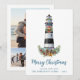 Nautical Lighthouse Watercolor 3 Photo Christmas Holiday Card