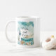 This beautiful and elegant wedding mug with a nautical black and white lighthouse, starfish and shells. Perfect for a wedding. The words can be changed to suit your own details or requirements