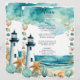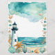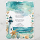 Beautiful wedding menu with a nautical black and white lighthouse, starfish and shells. Perfect for a wedding. The words can be changed to suit your own details or requirements