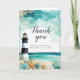 Beautiful wedding thank you card with a nautical black and white lighthouse, starfish and shells. Perfect for a wedding. The words can be changed to suit your own details or requirements