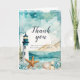 Beautiful wedding thank you card with a nautical black and white lighthouse, starfish and shells. Perfect for a wedding. The words can be changed to suit your own details or requirements