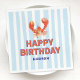 Set the stage for a nautical celebration with nautical kids birthday party napkins. These napkins showcase an enchanting lobster, modern blue and white stripes, and a personalised 'happy birthday' greeting with your child's name. Perfect for snack tables or cake time, these napkins unite fun style with convenience.