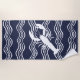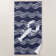 Nautical Lobster Navy Blue White Wave Stripes Beach Towel
