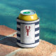 Commemorate your wedding in preppy nautical style with these wedding favour can coolers, featuring a lobster illustration in red, with the couple's names, wedding date and location in navy blue. A navy and white striped background finishes this design for a summery nautical look.