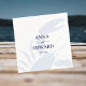 Nautical lobster wedding napkins with bride and groom names and wedding date. Large lobster with classic navy blue block text.