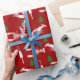 Give your Christmas gifts a nautical touch with this wrapping paper. It features a pattern of white lobsters and vintage wooden fishing buoys against a red background with festive green Christmas tree accents.
