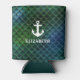 Nautical Mermaid Pattern Anchor Name Can Cooler - Blue, Green, White