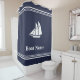 Nautical Midnight Blue and White Sailboat Add Text Shower Curtain