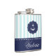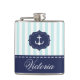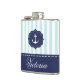 Nautical Mint Navy Blue Anchor Custom Name Hip Flask