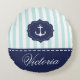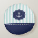 Nautical Mint Navy Blue Anchor Custom Name Round Cushion