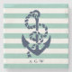 Nautical Mint Stripe & Navy Anchor Monogram Stone Coaster