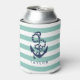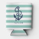Nautical Mint Stripe & Navy Anchor Personalised Can Cooler