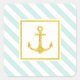Nautical Mint Stripes Faux Glitter Anchor Square Sticker