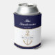 Nautical Modern Navy Blue Anchor Boat Name Can Cooler