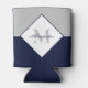 Nautical Modern Navy Blue Grey Monogram Can Cooler