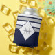 Nautical Modern Navy Blue, White Striped Grey Monogram Can Cooler  | Featuring an easy-to-personalise template, this design is both elegant and unique. This collection is perfect for personalising any home or occasion.
