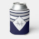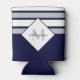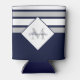 Nautical Modern Navy Blue Grey Stripes Monogram Can Cooler