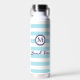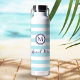 Nautical Monogram Beach Vibes Blue White Striped Water Bottle