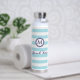 Stay hydrated in coastal style with this nautical-themed water bottle featuring crisp light blue and white horizontal stripes. A classic navy blue monogram initial sits at the centre of a double-ring porthole-style frame, paired with the elegant script phrase "Beach Vibes" for a breezy, beach-ready look. Perfect for seaside adventures, boat trips, summer holidays, or as a gift for ocean lovers. Personalise with your initial for a stylish finishing touch.
