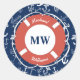 Nautical Monogram Navy Blue Anchor Pattern Classic Round Sticker