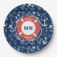Nautical Monogram Navy Blue Anchor Pattern Paper Plate