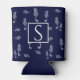 Nautical monogram Seahorse shell Navy Blue White Can Cooler